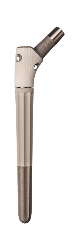 The femoral stems are designed to guarantee an optimal metaphyseal filling. The metaphyseal zone has a triangular section to avoid the generation of varus forces. The triangular section in the metaphiseal zone guarantees an antirotational effect and the round section in the bottom stems part allows an optimal medullary canal filling. The internal stems profile changes with the implant size in order to keep constant the head offset and avoid a valgisant effect for the smaller sizes.