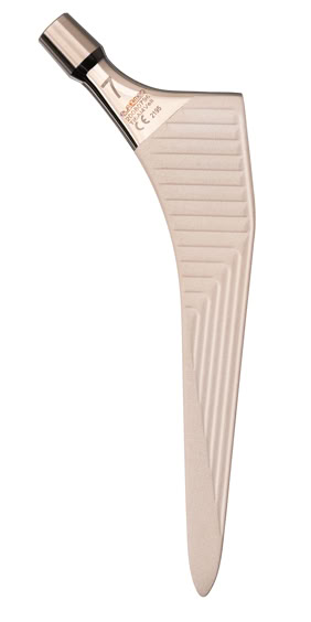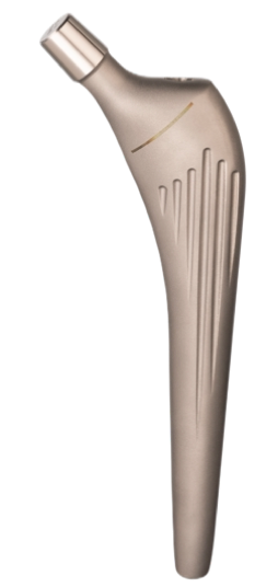 The femoral stems are designed to guarantee an optimal metaphyseal filling. The metaphyseal zone has a triangular section to avoid the generation of varus forces. The triangular section in the metaphiseal zone guarantees an antirotational effect and the round section in the bottom stems part allows an optimal medullary canal filling. The internal stems profile changes with the implant size in order to keep constant the head offset and avoid a valgisant effect for the smaller sizes.